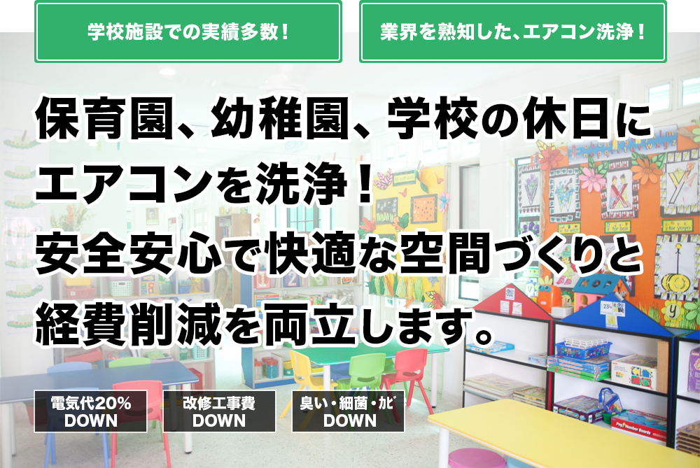 園児や生徒に安全安心で快適な空間づくりのために、保育園、幼稚園、学校においてエアコンは必要不可欠な存在です。